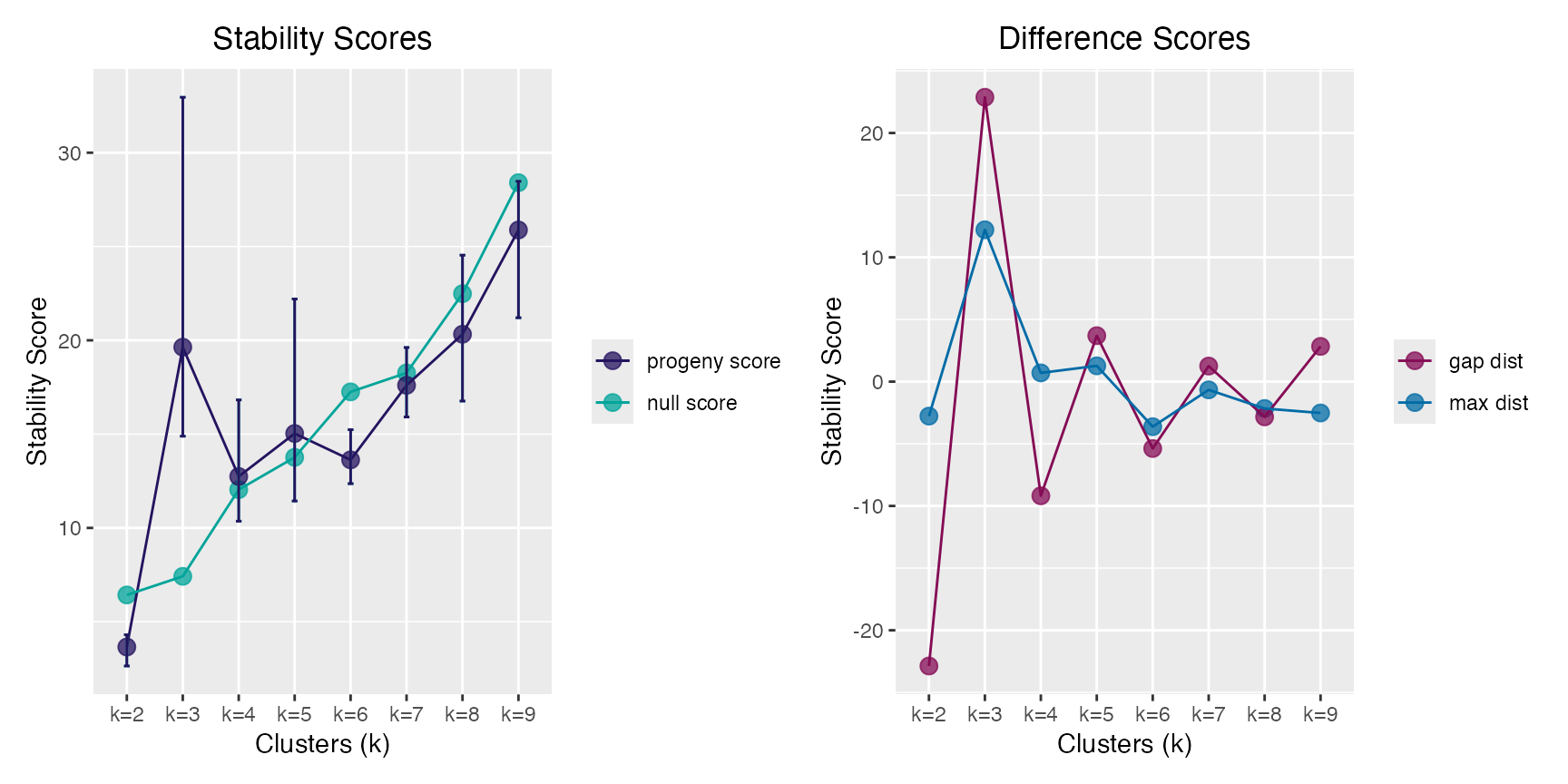 #> Call progeny_cluster(data = progeny_data, clust_iter = 2:9L, reps = 10L, iter = 25L, size = 6)