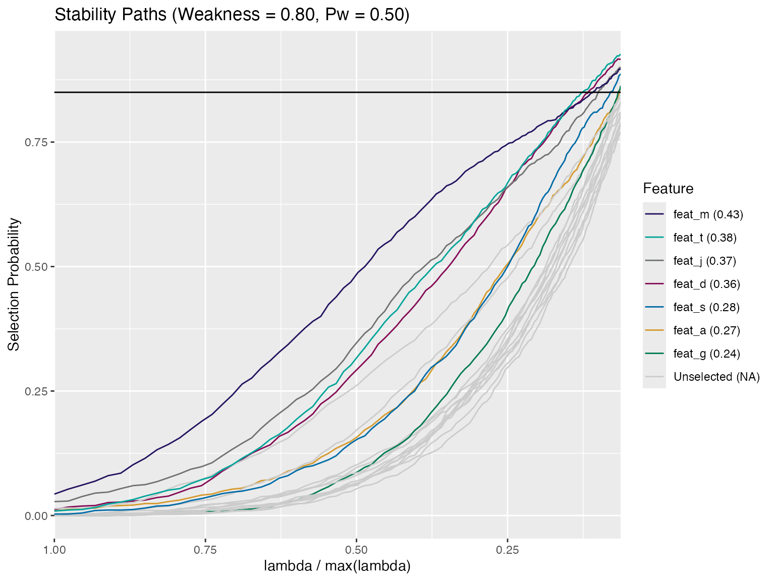 #> ═══════════════════════════════════════════════════════════════════════Stable Features at a threshold