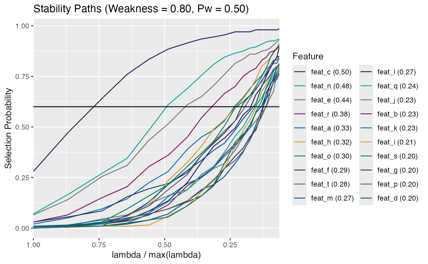 stab_sel <- stability_selection(x, y, "l1-logistic", num_perms = 25,